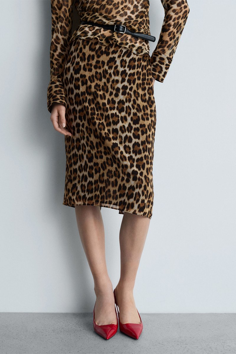 Jupe midi léopard.