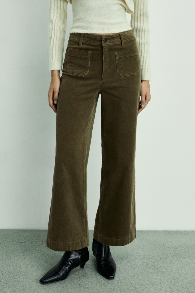 Pantalon Catherin style jupe-culotte velours côtelé - Kaki