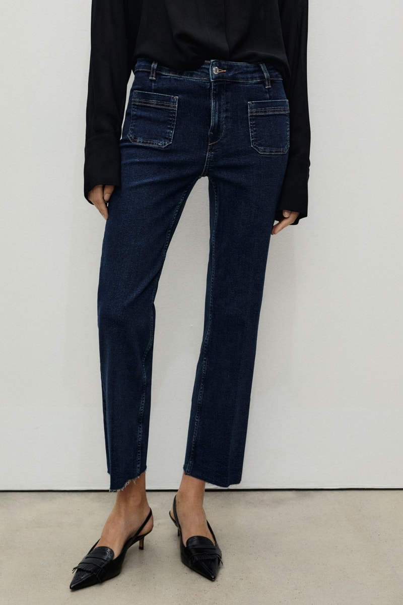 Jean flare crop poches.