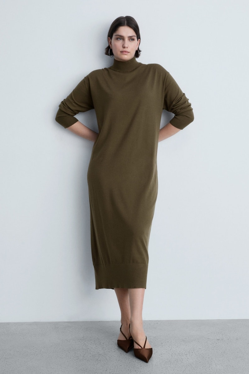Robe maille col montant - Kaki
