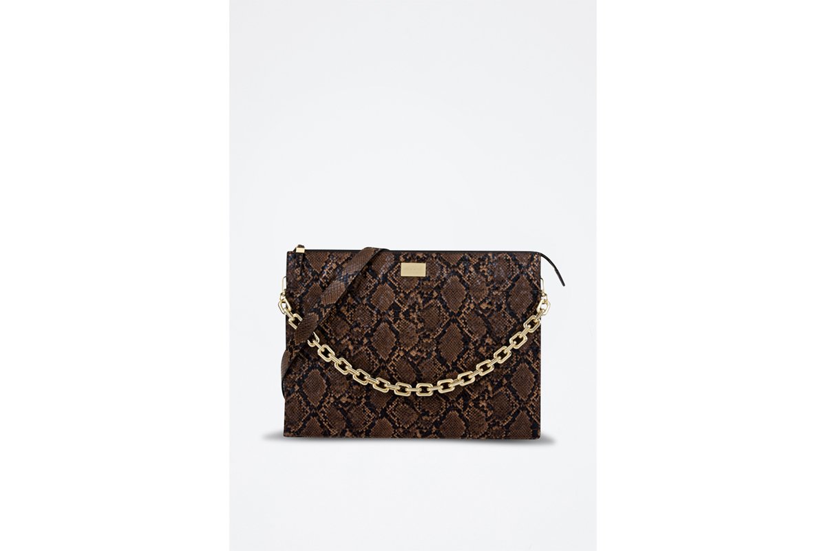 La pochette pour ordinateurs Leia présente un design bicolore épuré et élégant avec un motif décoratif matelassé inspiré du serpent.