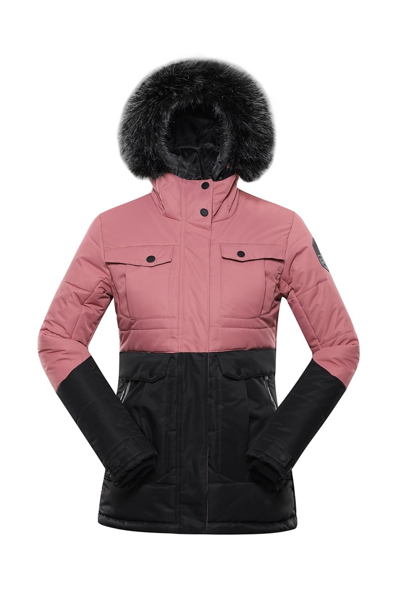 Veste à capuche en fourrure - Vieux rose et noir
