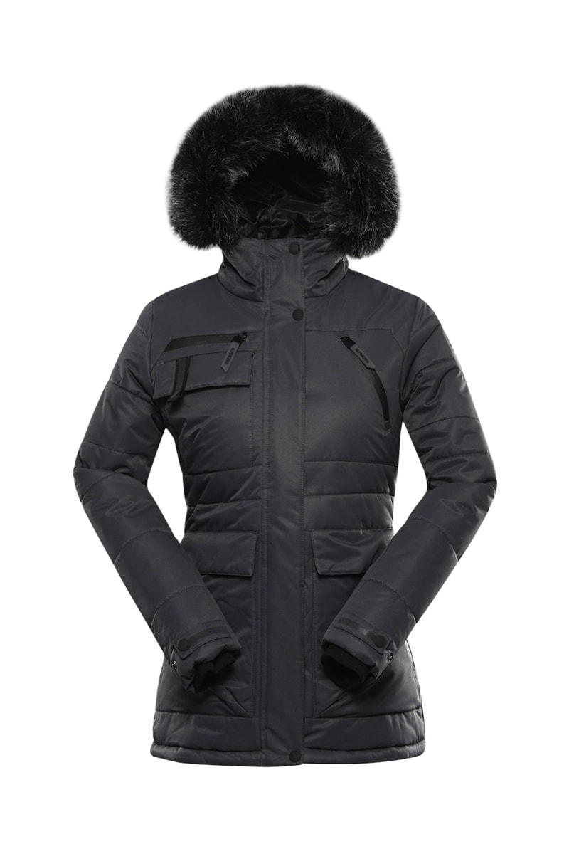 Veste à capuche avec fourrure synthétique et patte à scratch.
