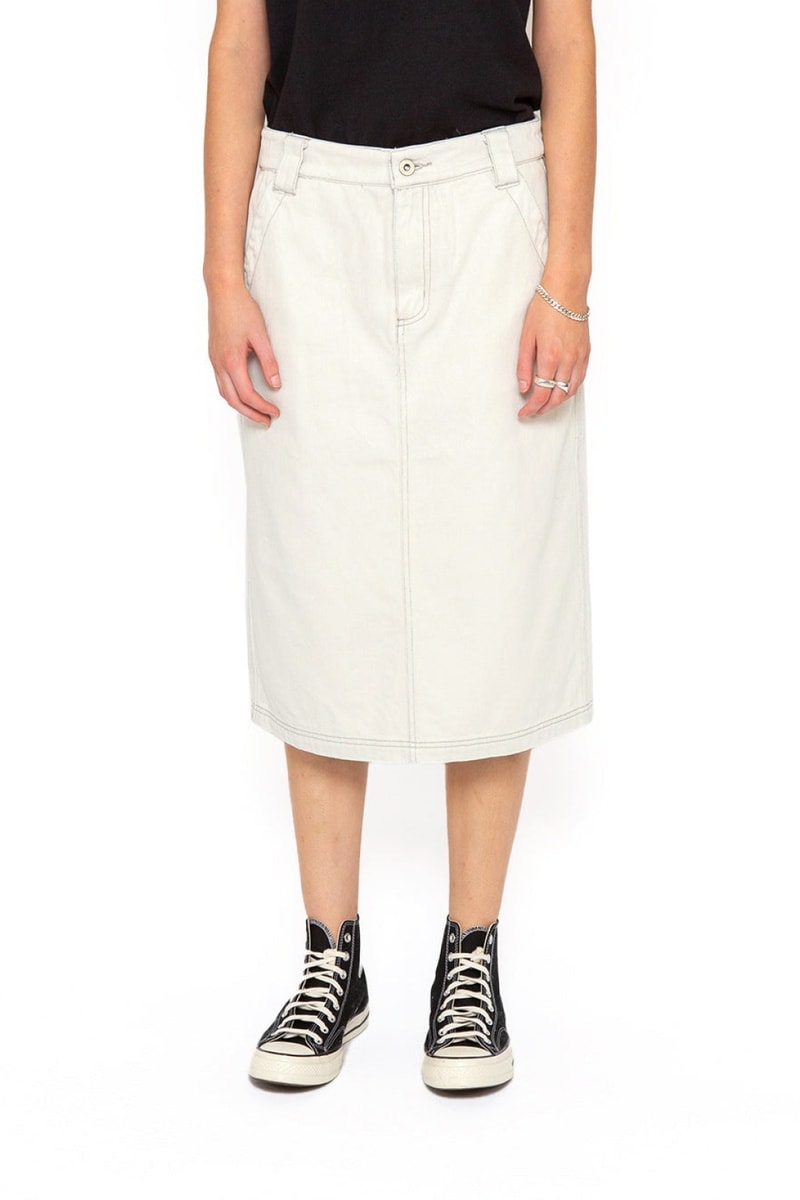 Jupe droite en jean taille haute - Blanc