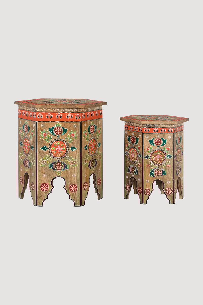 2 tabourets en manguier - 37 x 42 x 42 / 48 x 50 x 48 cm