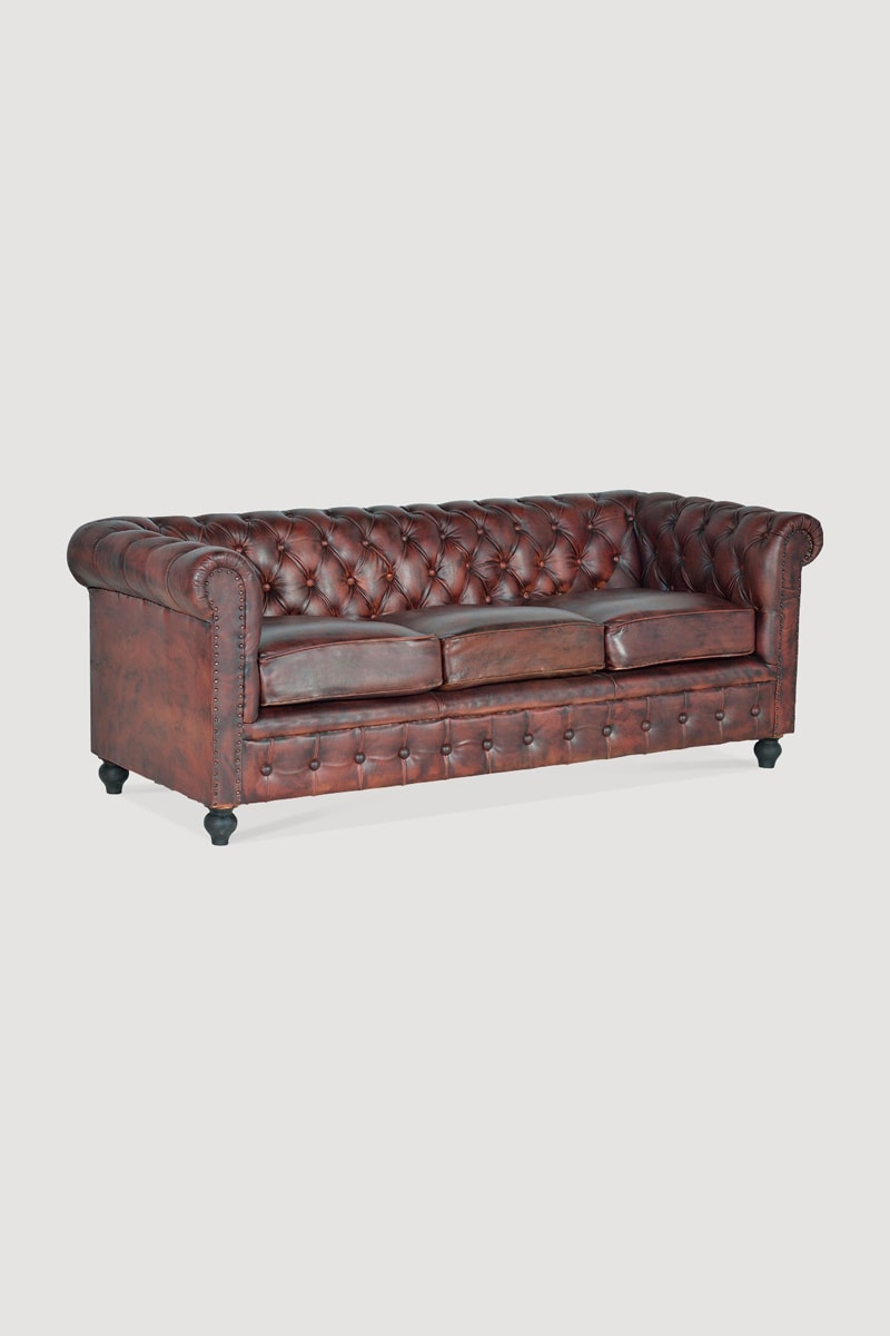 Canapé 3 places en cuir vieilli.