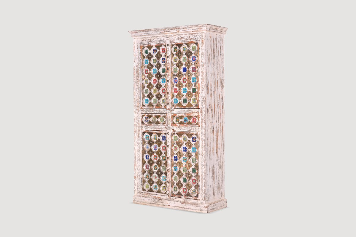 Armoire 4 portes et 2 tiroirs - Blanc vieilli et doré