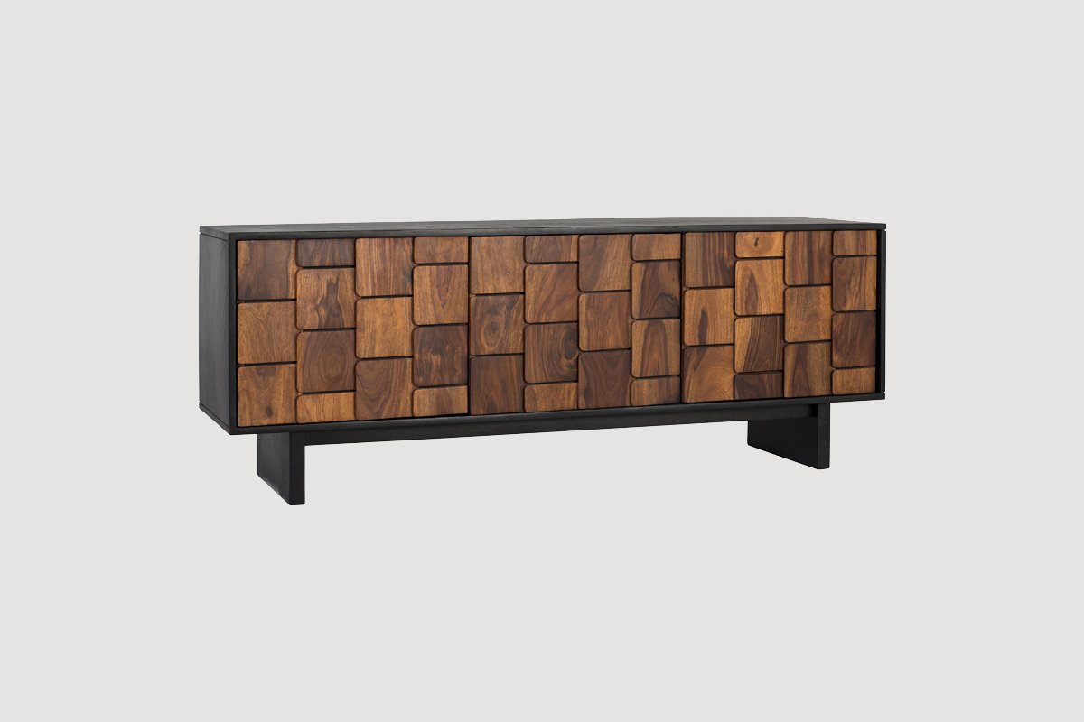 Meuble TV 3 portes en manguier et bois de sheesham - 160 x 61 x 40 cm