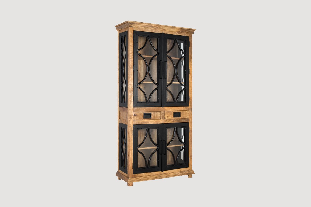 Vitrine 4 portes en bois de manguier - 100 x 200 x 40 cm