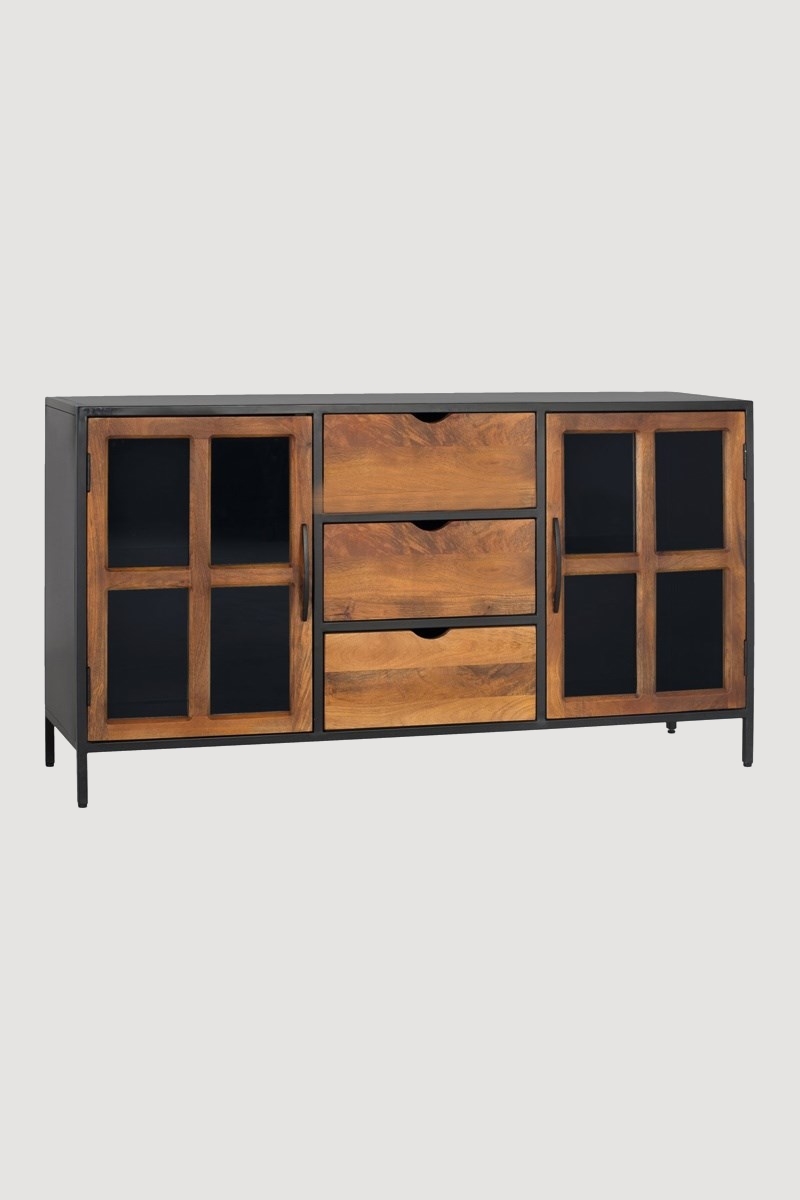 Buffet 2 portes et 3 tiroirs - Naturel et noir