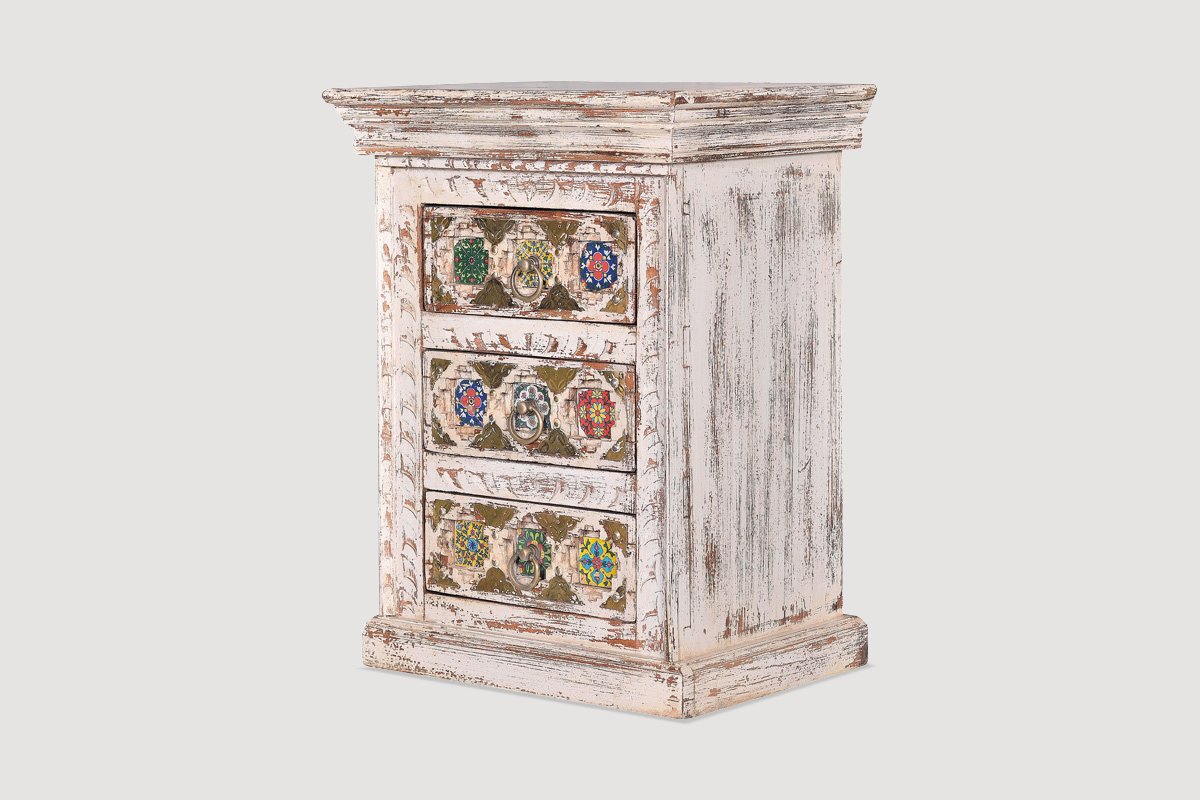 Table d'appoint 3 tiroirs - Blanc vieilli et doré