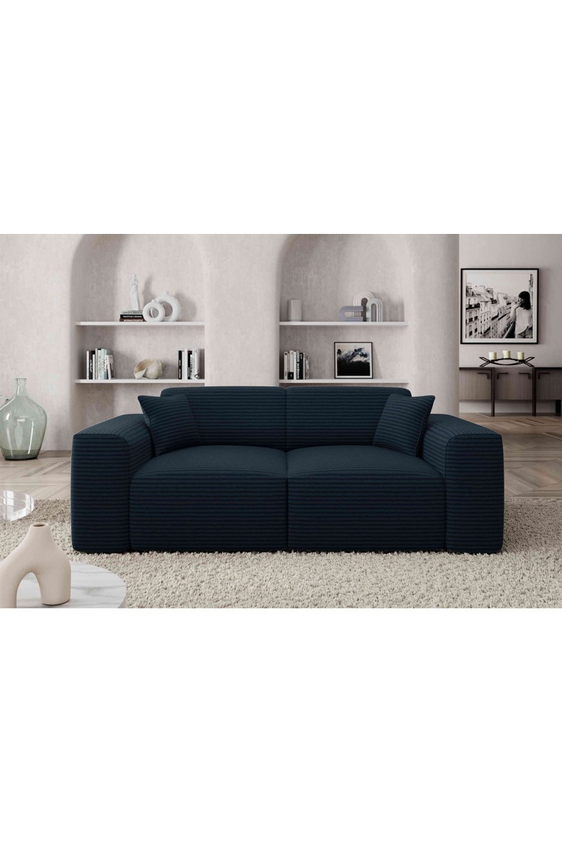 Canapé droit Lenova - Bleu atlantique - 3 places - Tissu velours côtelé