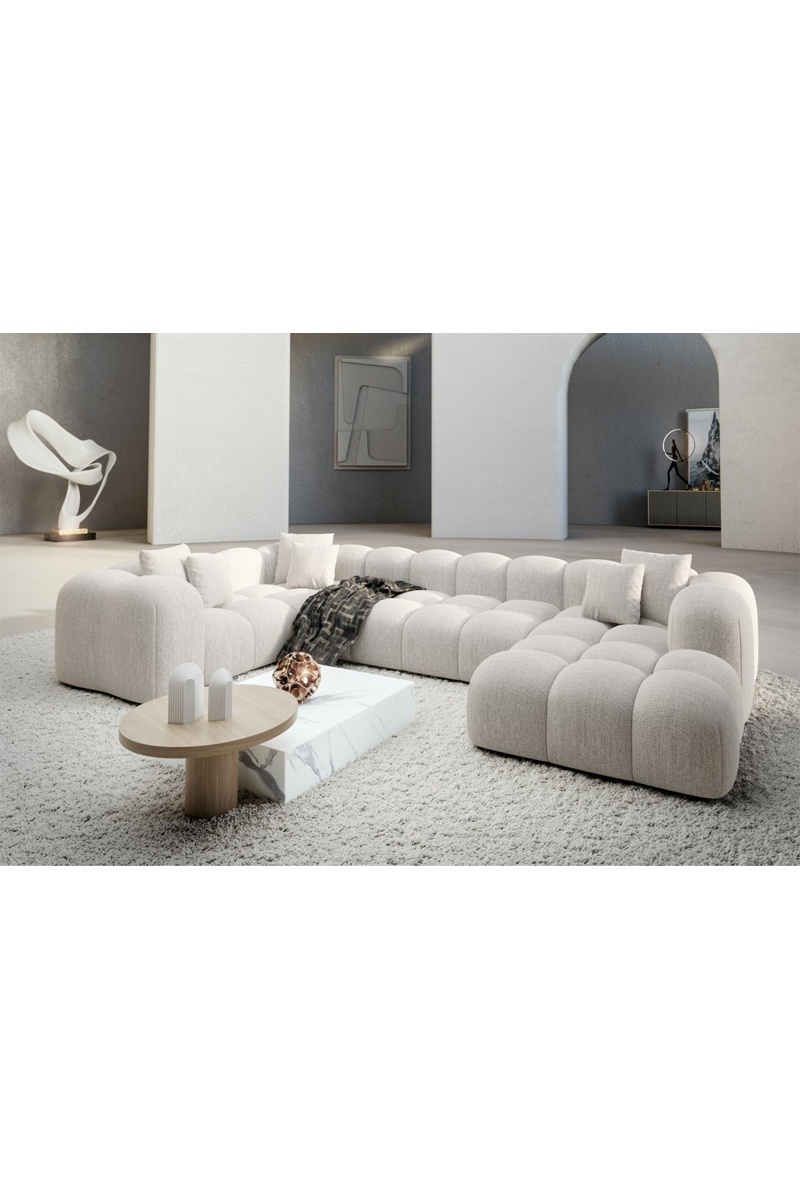 Canapé d'angle droit panoramique Nuvola - Blanc - 7 places - Tissu structuré