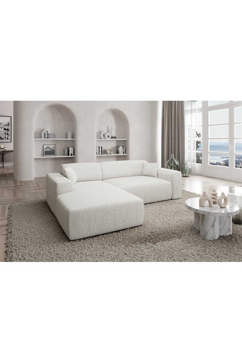 Canapé d'angle gauche Lenova - Blanc - 5 places - Tissu structuré