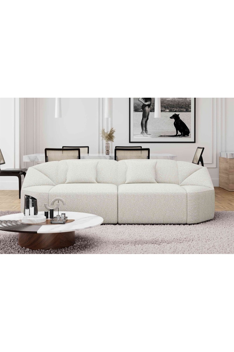 Canapé droit Laguna - Blanc - 3 places - En tissu bouclette