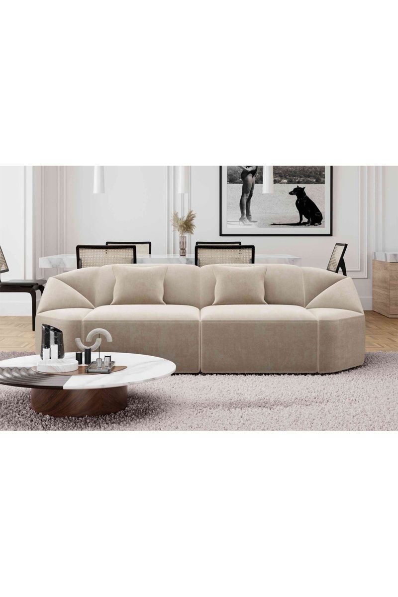 Canapé droit Laguna - Crème - 3 places - En tissu velours