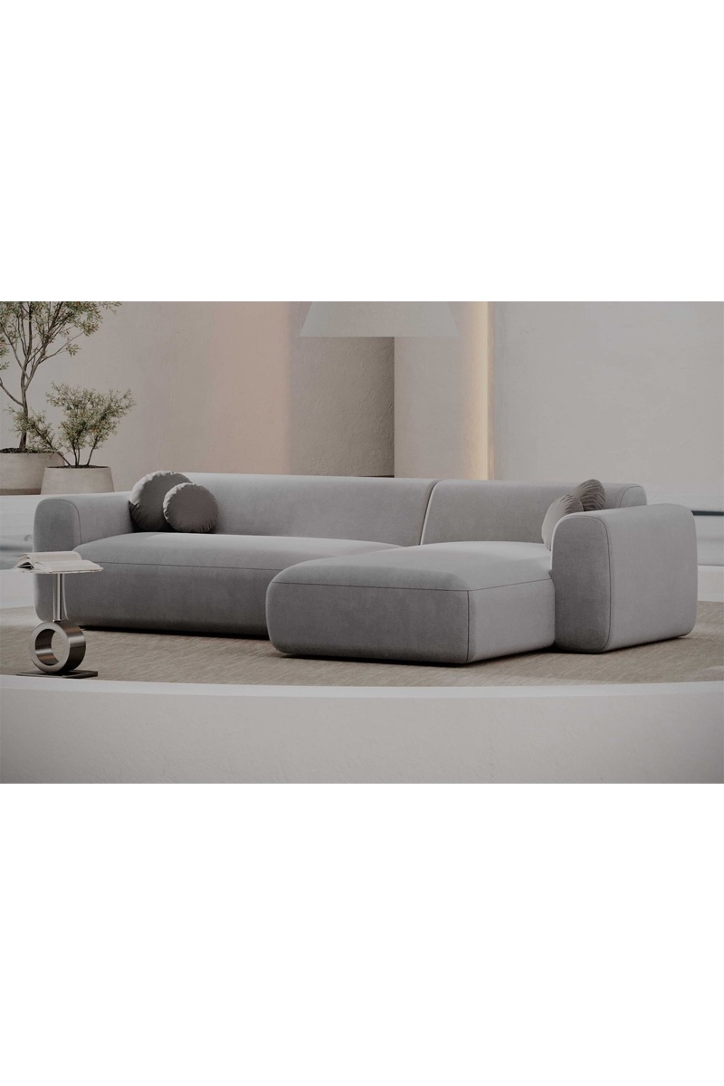 Canapé d'angle droit Moloko - Gris clair - 5 places - Tissu toucher velours