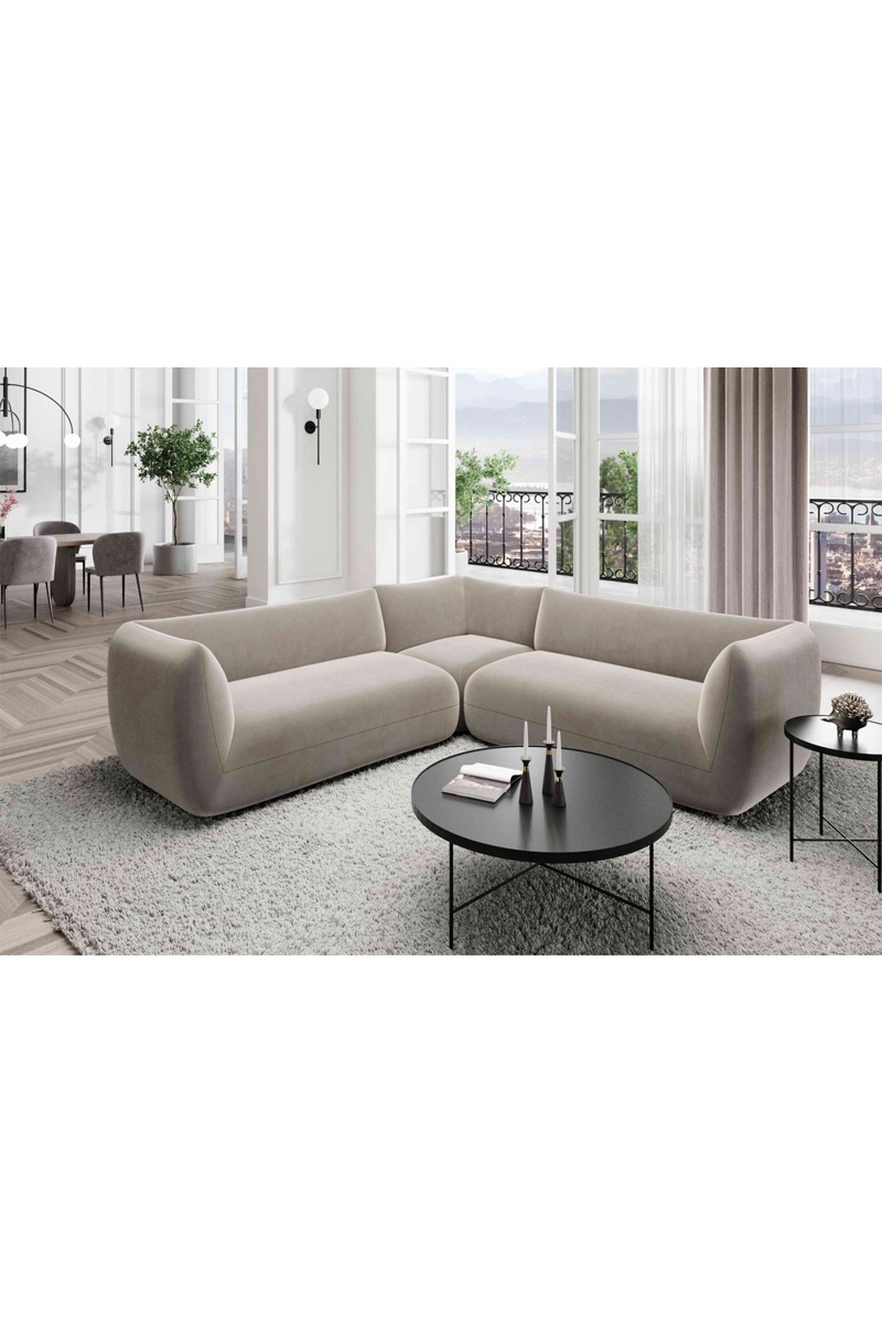 Canapé d'angle Leroy - Beige foncé - 6 places - Tissu toucher velours