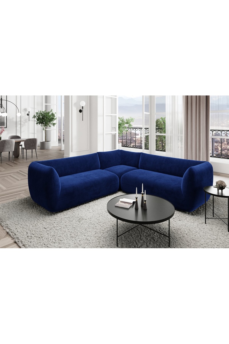 Canapé d'angle Leroy - Bleu foncé - 6 places - Tissu toucher velours