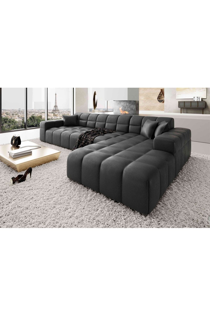 Canapé d'angle droit Cardano - Noir - 5 places - En cuir