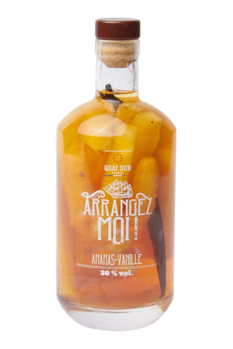 Boisson spiritueuse à base de 50 cL de rhum des Caraïbes à 30% vol., 180 g de fruits, 1 gousse de vanille et 1 pointe de caramel.