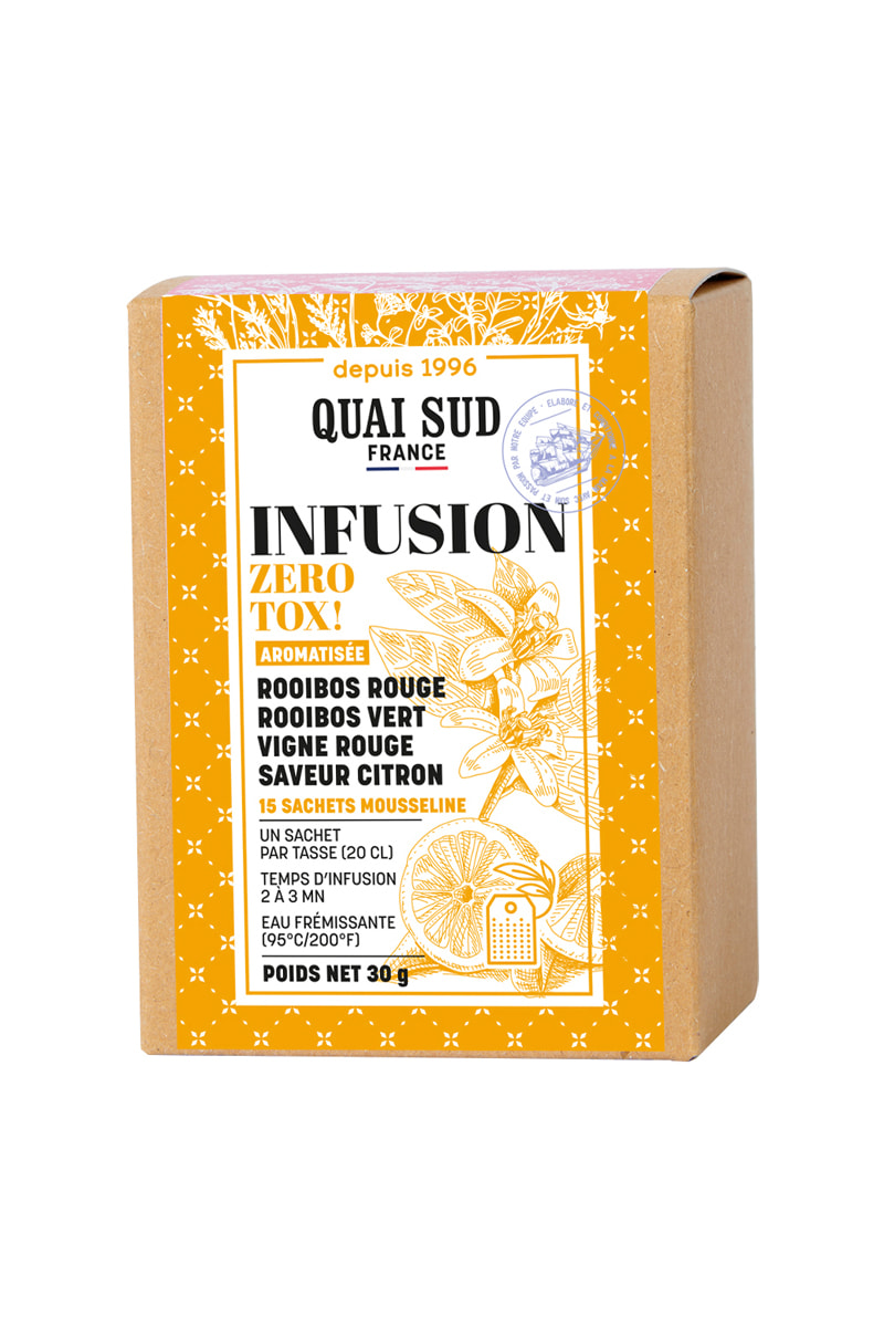 Infusion aromatisée rooibos rouge rooibos vert vigne rouge citron.