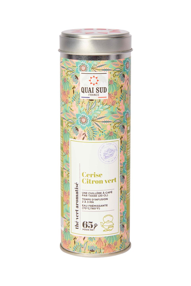 Ingrédients : thé vert Gunpowder, feuilles de menthe 8,7 %, morceaux de cerise 2,6 %, arôme naturel goût citron vert 0,8 %.