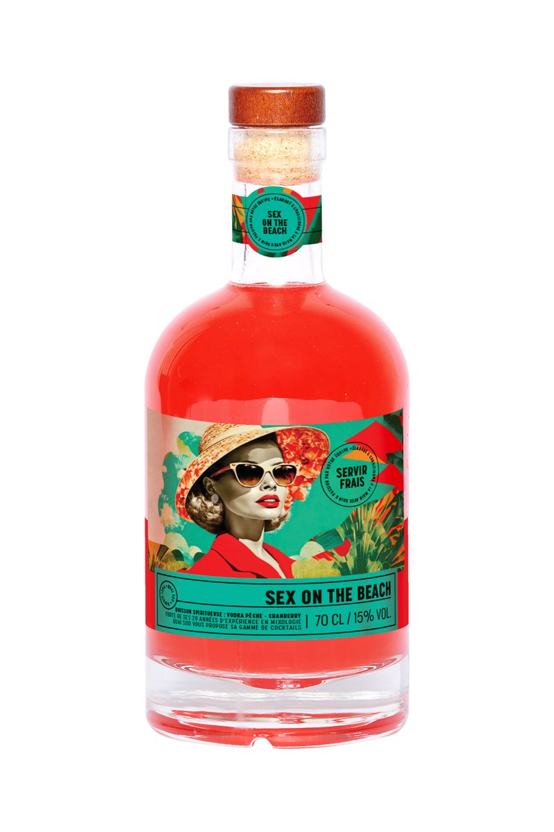 Boisson spiritueuse, vokda saveurs pêche et cranberries.