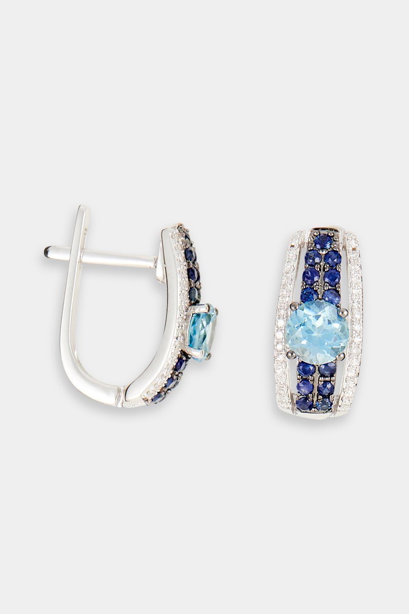 Boucles d'oreilles Elsa - Or blanc, saphirs et topazes