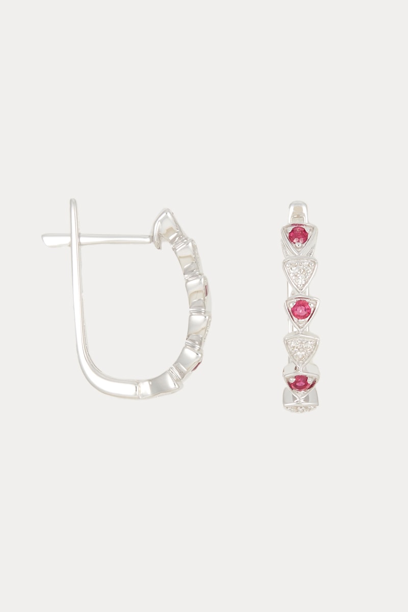 Créoles en or blanc serties de diamants et de 3 rubis.