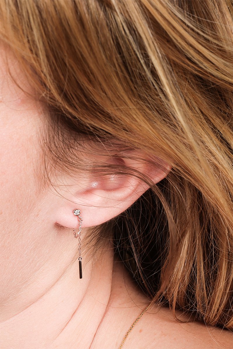 Boucles d'oreilles pendantes en or rose serties d'un diamant.
