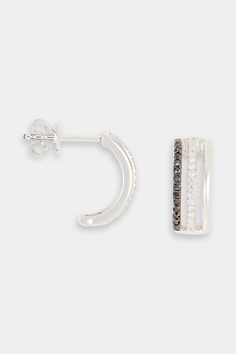 Boucles d'oreilles en or blanc serties de 17 diamants et de 14 diamants noirs.