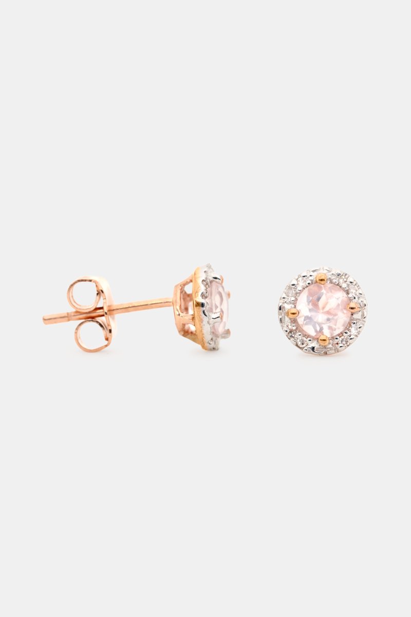 Coloris et qualité diamants : H SI Matière : or rose 375/1000, diamants 0,05 carat/16 et quartz 0,46 carat/2