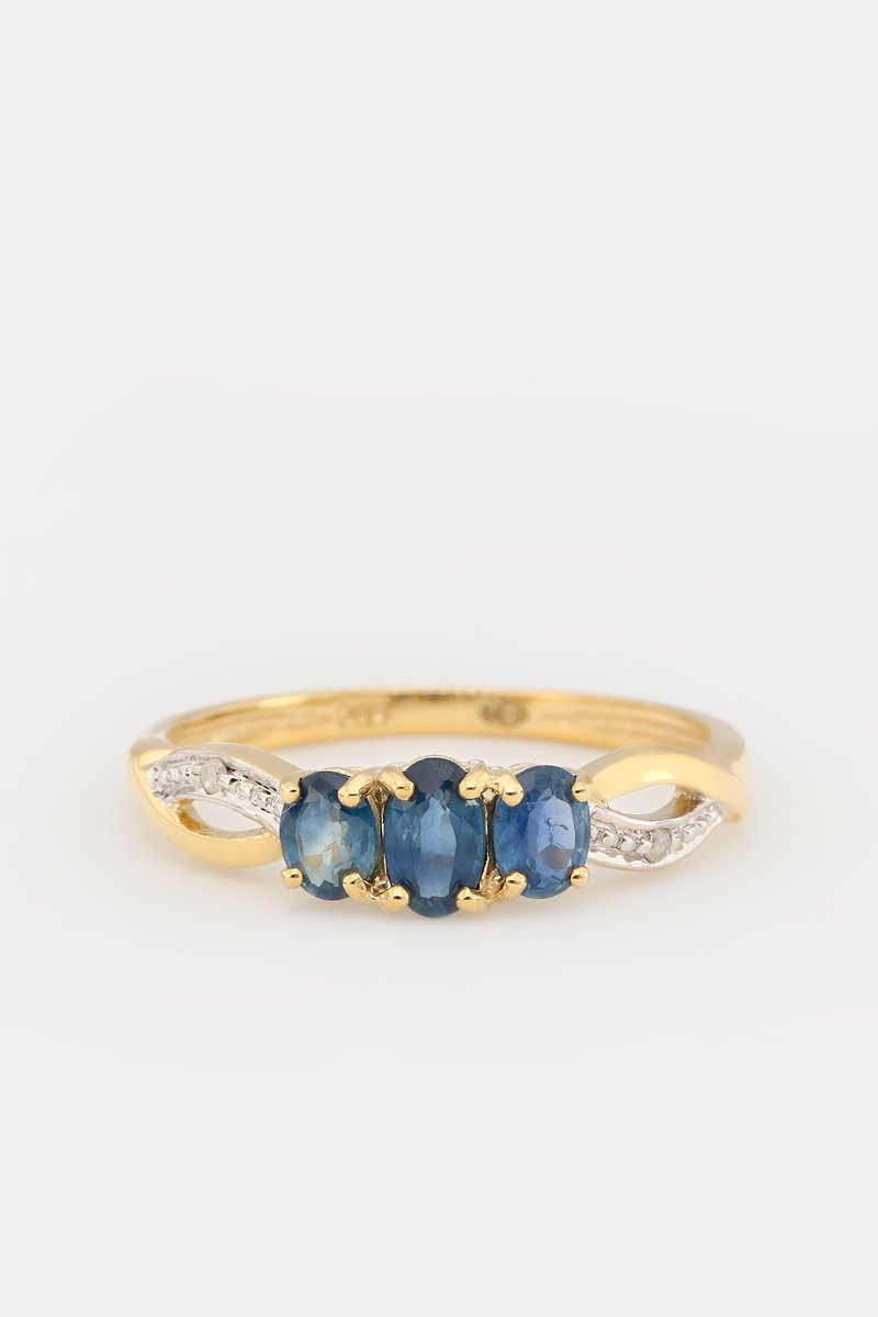 Matière : or jaune 375/1000, saphirs 0,80 carat/3 et diamants 0,01 carat/2