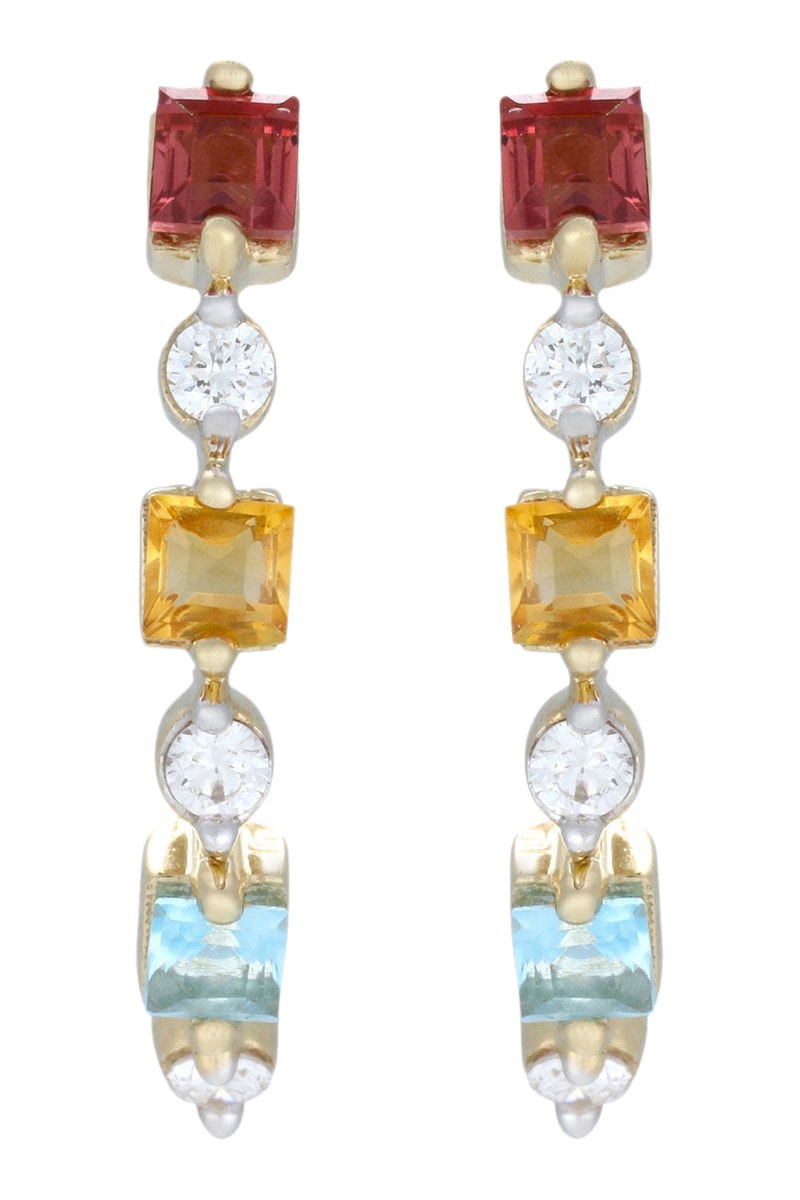 Boucles d'oreilles - Or jaune, diamants, grenats, citrines et topazes