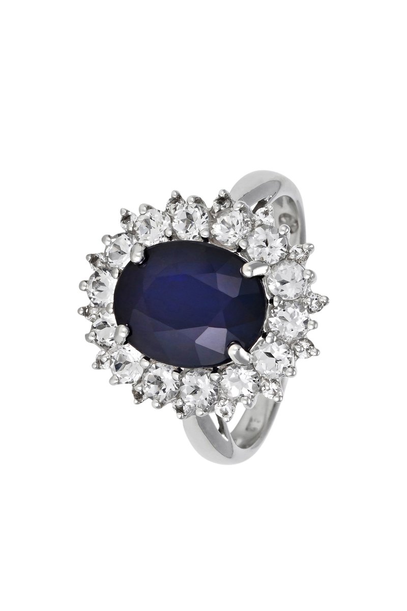 Matière : or blanc 375/1000, topazes et saphir 4,83 carats