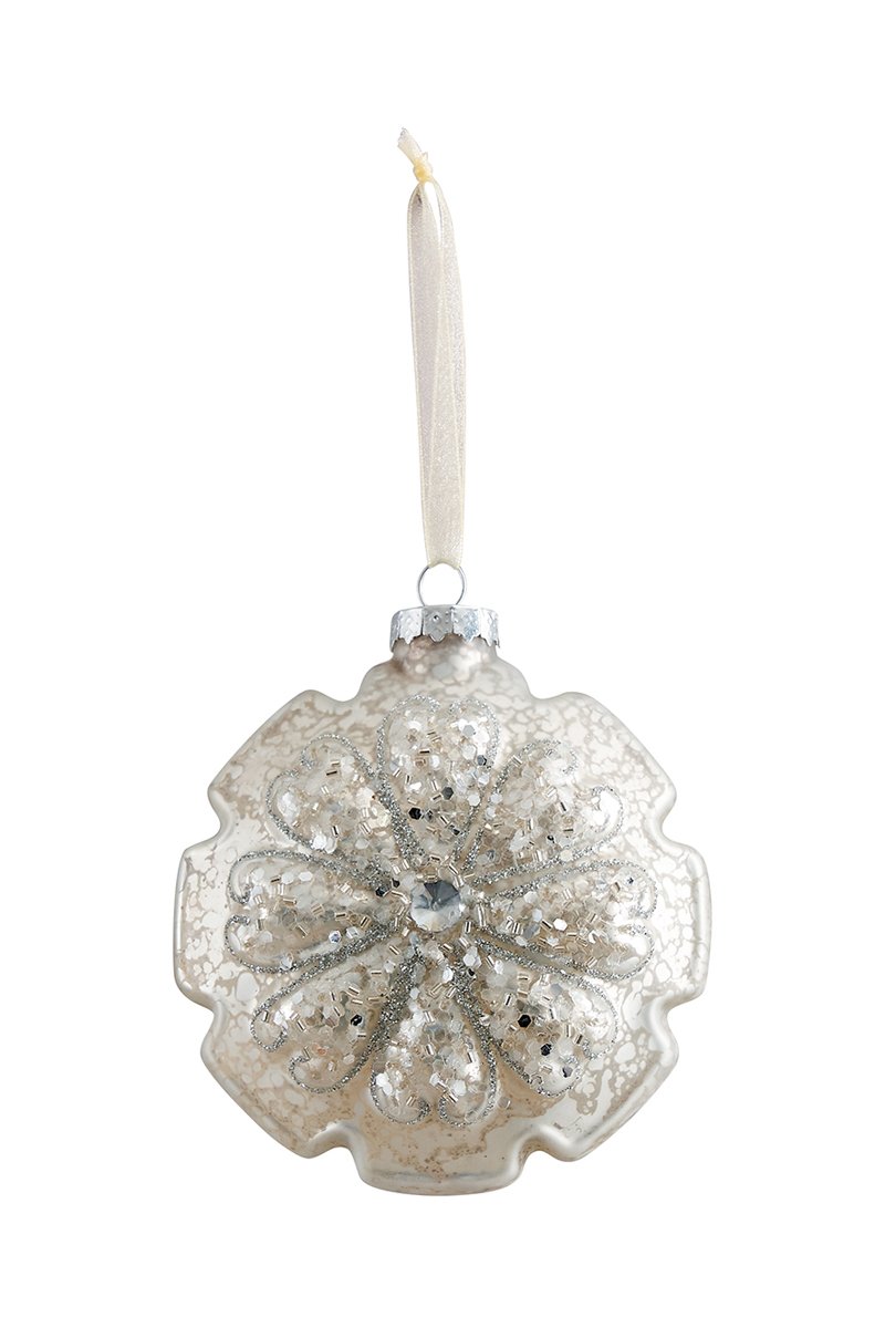 3 x Décoration Fleur de Noël à suspendre - Argenté