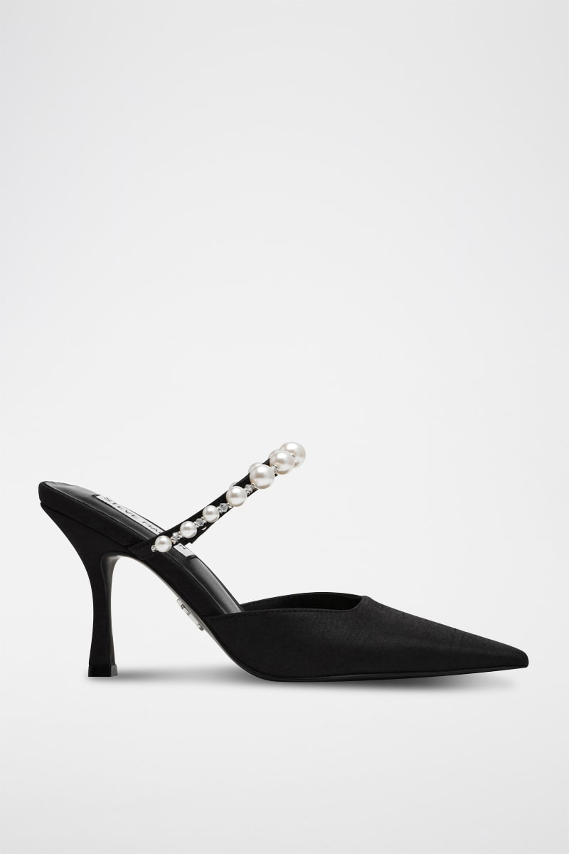 Mules à talons en satin.