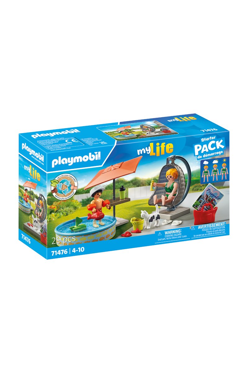 29 accessoires inclus tels que : figurines, pataugeoire, fauteuil suspendu, chat.