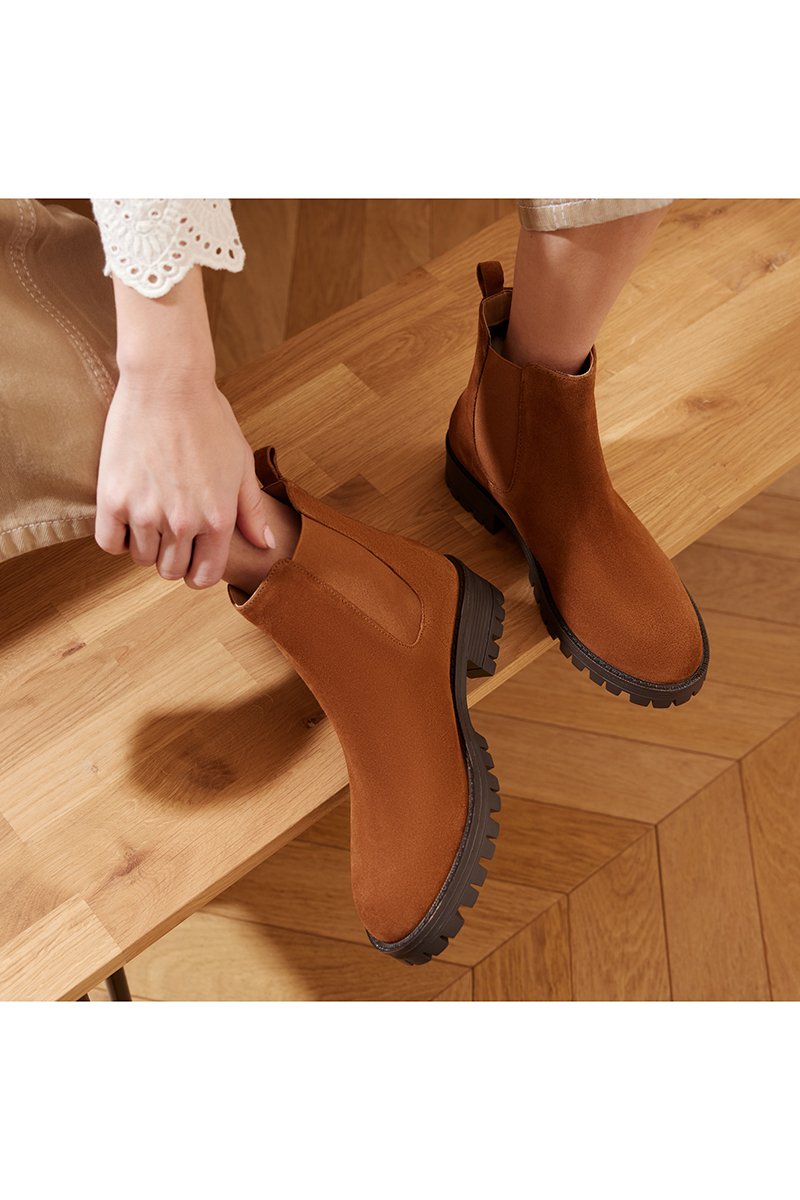 Bottines Chelsea en nubuck et cuir Estelle - Camel - Leonarr x Swan