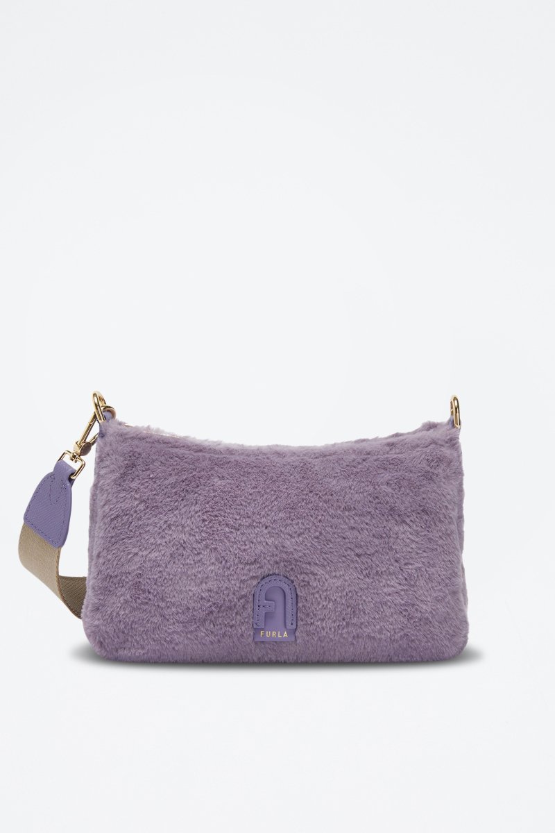 Sac bandoulière en fourrure synthétique.