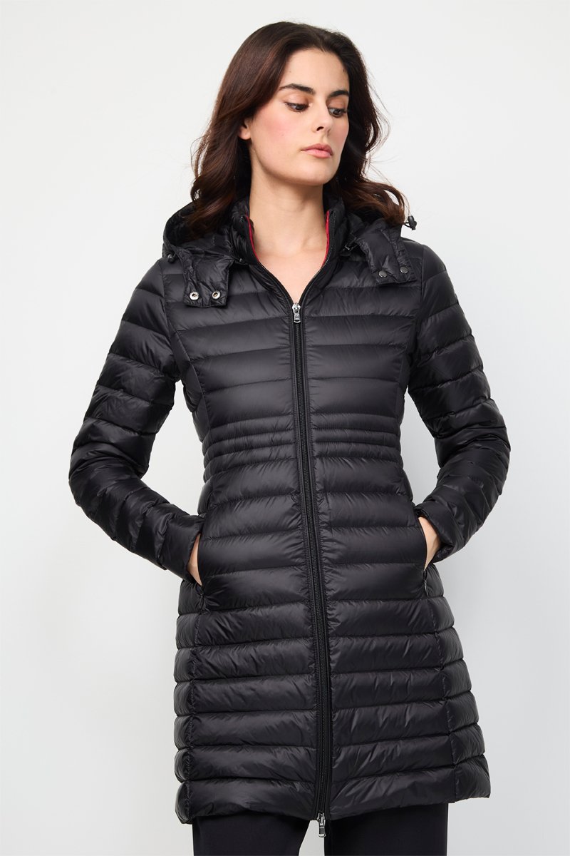 Capuche amovible avec liens de serrage, barillet et patte pressionnée.