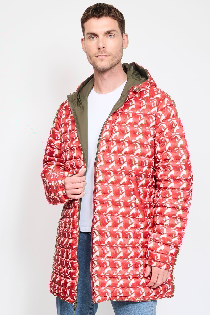 Doudoune réversible à capuche Amsterdam - Kaki et rouge