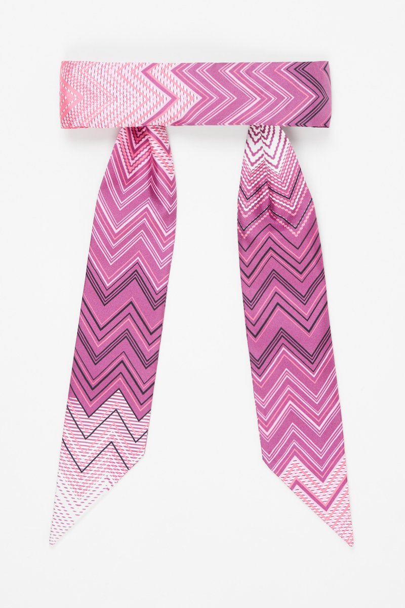 Connue pour sa maille et ses rayures chamarrées, la marque italienne Missoni égaie vos looks grâce à ses foulards, cravates et écharpes aux couleurs et motifs éclatants !