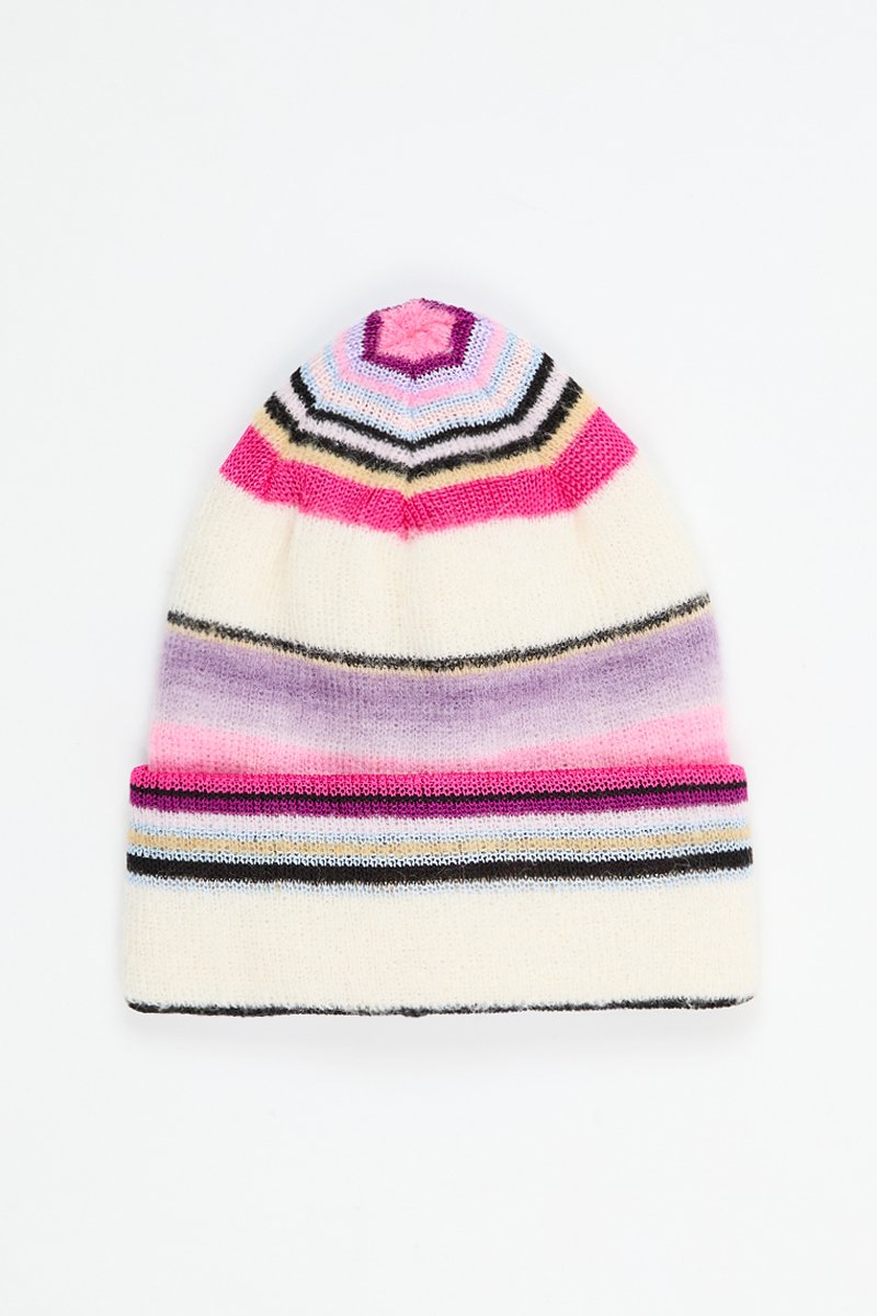 Bonnet en alpaga et mohair - Blanc et rose