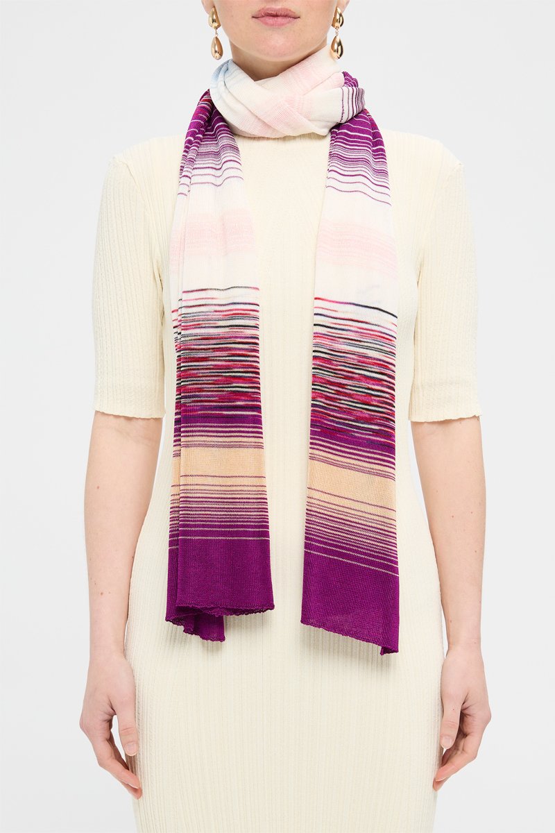 Connue pour sa maille et ses rayures chamarrées, la marque italienne Missoni égaie vos looks grâce à ses foulards, cravates et écharpes aux couleurs et motifs éclatants !