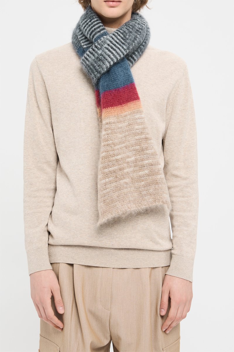 Echarpe en laine et mohair - Bleu marine et beige chiné