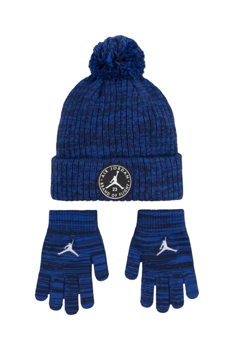 Bonnet à pompon et gants - Bleu nuit chiné