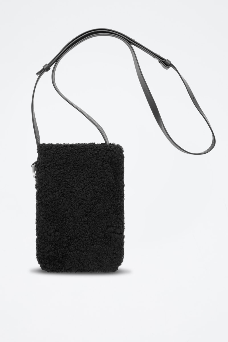 Sac bandoulière en fourrure synthétique et laine.