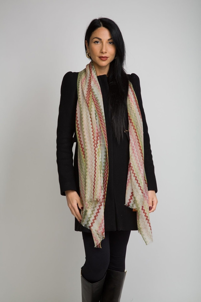 Connue pour sa maille et ses rayures chamarrées, la marque italienne Missoni égaie vos looks grâce à ses foulards, cravates et écharpes aux couleurs et motifs éclatants !